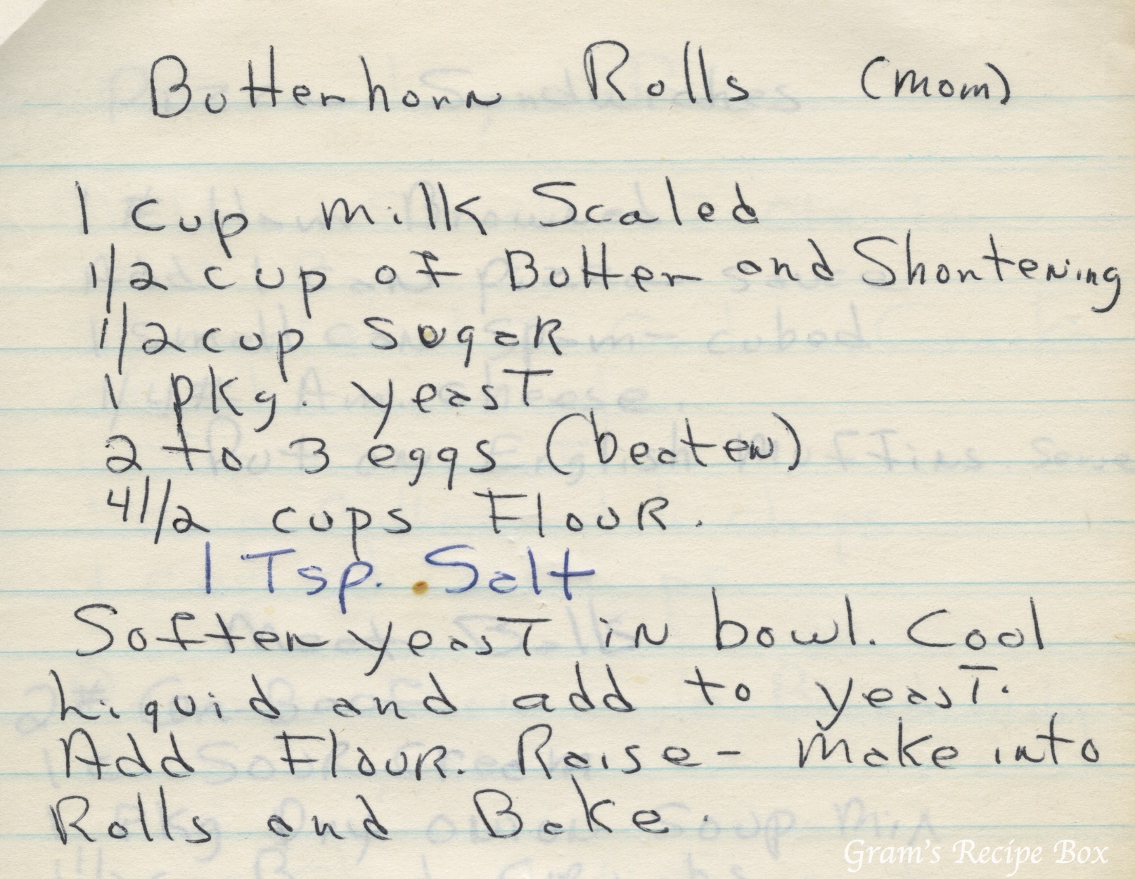Soften yeast in bowl. Cool liquid and add to yeast. Add flour. Raise – Make into rolls and bake.