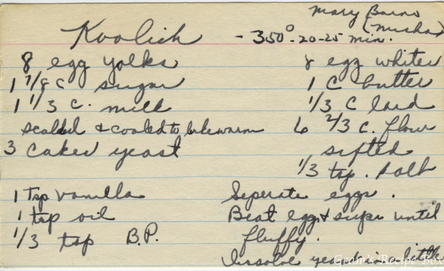 Here’s another copy of the Mary Barns koolich recipe. It is a little more organized although it seems to be identical. In looking for images of what these breads look like, I found several images showing the koolich surrounded with colored Easter eggs. I also found a wonderful article from the St. Petersburg Times covering a museum exhibition from 2012 that presented many Russian Easter traditions, including koolich, paska, and colored eggs. Click on the images below for greater detail.