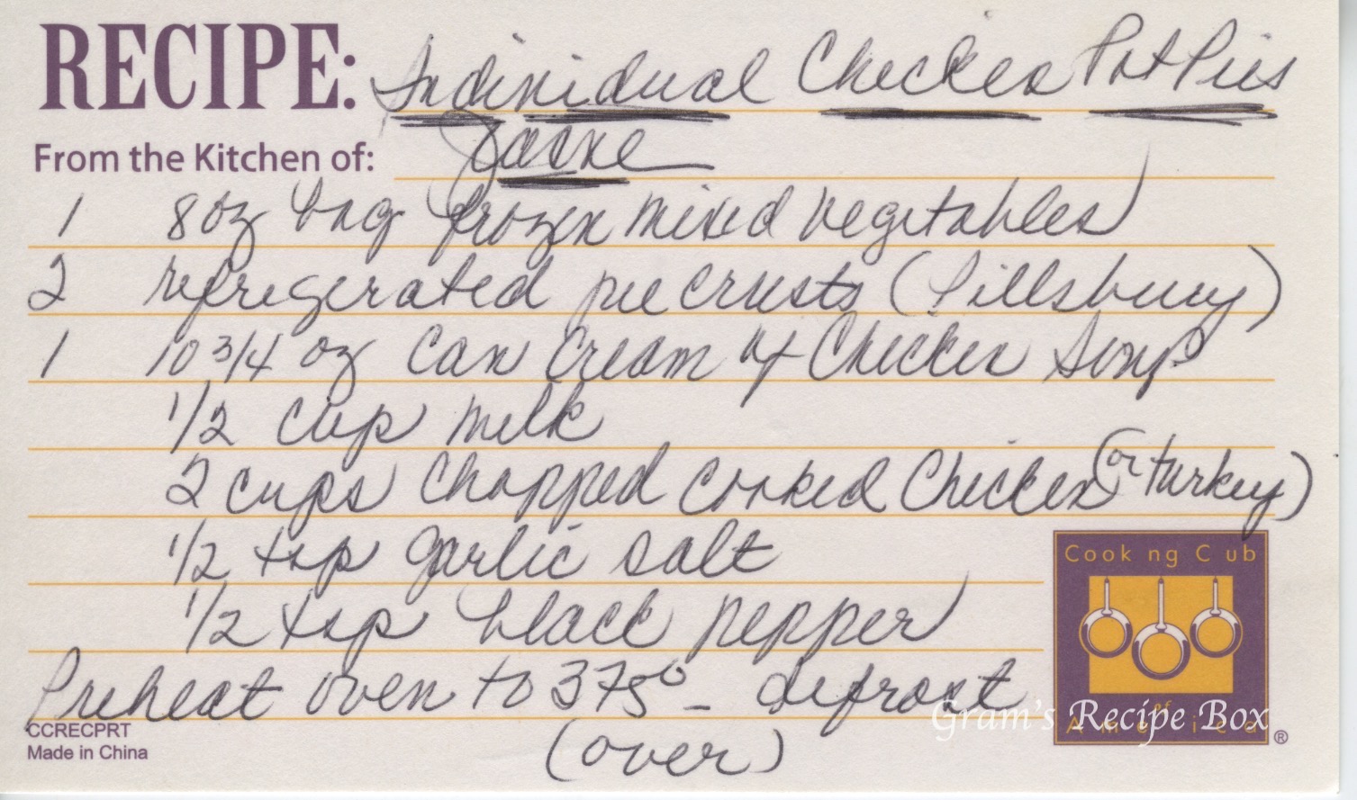 Individual Chicken Pot Pies – Jeanne