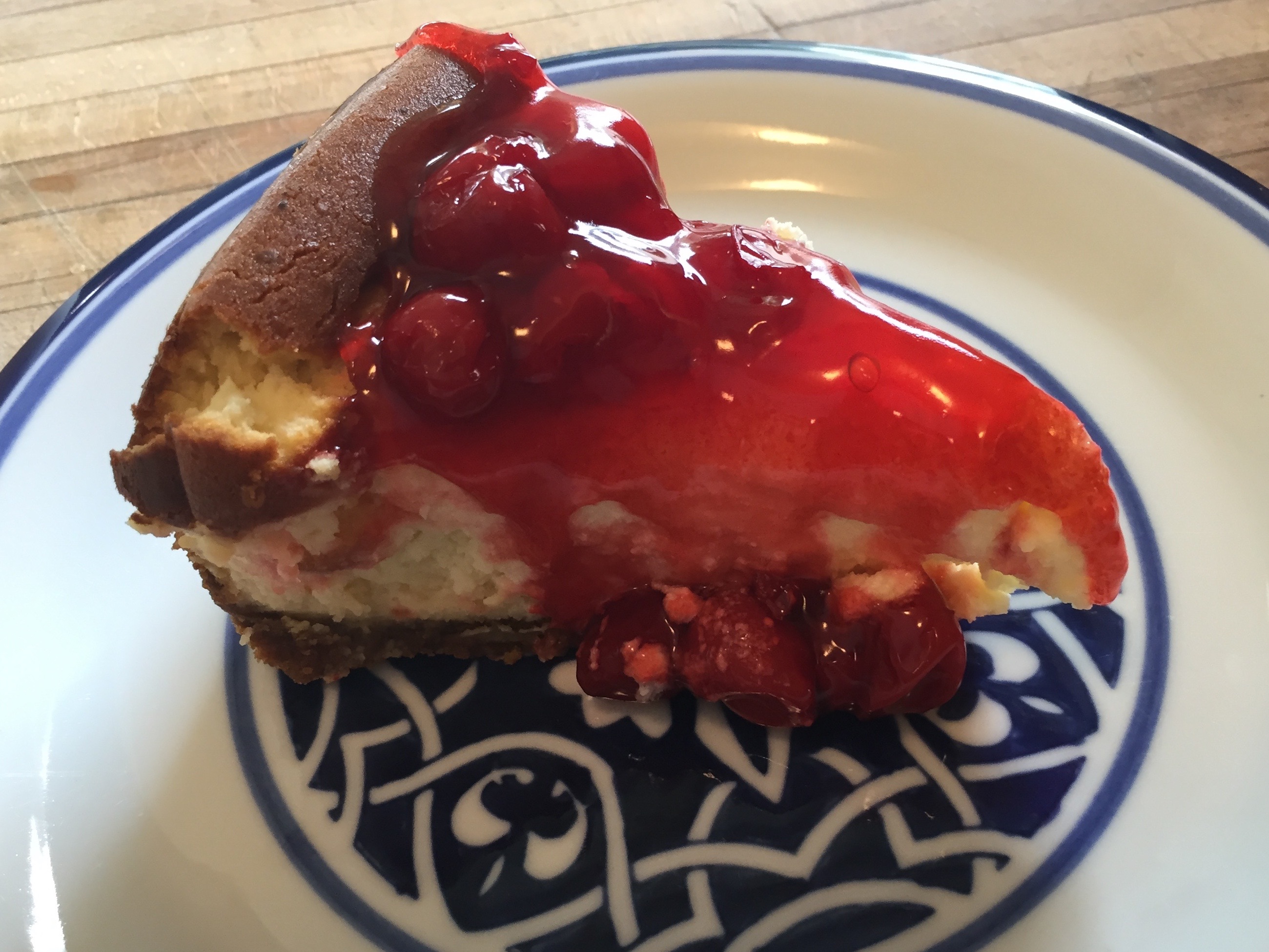 This cheesecake turned out delicious, creamy and moist, not to firm, but definitely filling! I made a graham cracker crust that was really delicious too. The original recipe doesn’t call for that, but I think it would be a nice addition. If you don’t like cherries, you can use pretty much any topping, or just leave it plain. That’s good too. My husband the cheesecake aficionado declared this cheesecake recipe a keeper! I hope you will be inspired to give it a try as well; it is quite worth it!