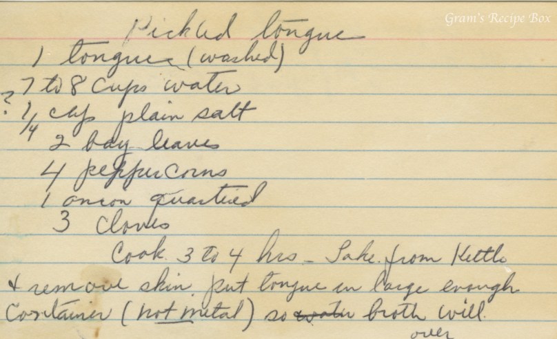 I use to make tongue all the time. It really tastes pretty good and makes great sandwiches. My dad was always lamenting the fact that his mother made the best tongue and he missed it as my mother wasn’t thrilled about it at all. So being the dutiful daughter that I tried to be, I made it for him. Remember, if you do made it, along with taking the skin off you have to remove the root as well. It’s a tough piece of grissle that attaches the tongue to the body. After I slice it (when cold), I like to saute’ it and season well before using in a sandwich. Bon appetite.