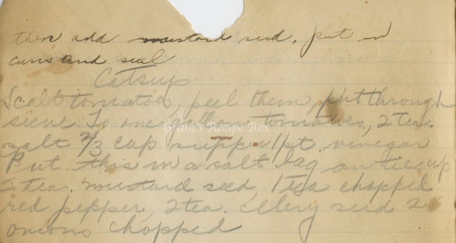 Here’s another recipe for catsup. In this instance, the catsup seems like it will have more of what we consider to be a “traditional” flavor. It includes mustard, salt, red pepper, etc. Does anyone know how large a “salt bag” was? The recipe wants us to put certain spices into a salt bag and I suppose after that we cook the entire concoction until it thickens…?