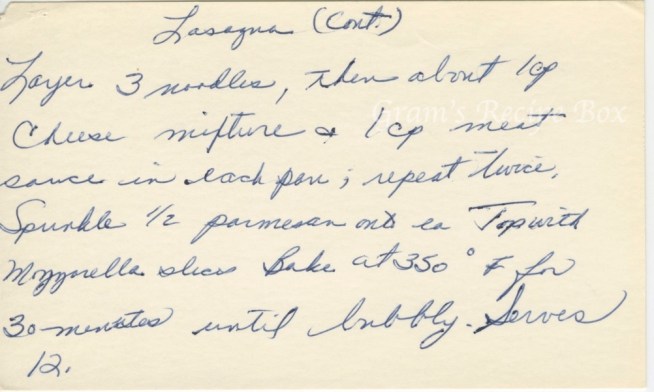 You can never have too many lasagna recipes, in my opinion. They may not always be significantly different, but sometimes you can take ideas and methods from various recipes to combine into your “own” special method. My mother used to put slices of pepperoni into hers on occasion. I loved that. These days, if I make a big pasta dish, it’s one of the “lazy day” lasagna types that uses rigatoni or penne noodles. I hate working with the big lasagna noodles because they always tear. One thing you can do is parboil them rather than fully cook them. They will absorb a little bit more liquid when baking.