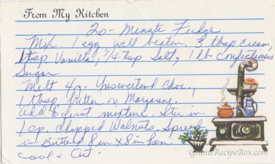 While I’m not very good at making candy, this might be a little easier. Fudges are basically ingredients, mixed together, then allowed to set. Easier recipes like this were designed for women who – like me – didn’t excel with candy. But this looks easy enough to try.