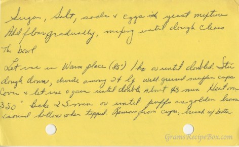 Let rise in a warm place (85º) 1 hour or until doubled. Stir dough down, divide among 24 large well greased muffing cups. Cover & let rise again until double, about 45 minutes. Heat oven to 350º. Bake 25 min or until puffs are golden brown, sound hollow when tapped. Remove from cups, brush with butter.