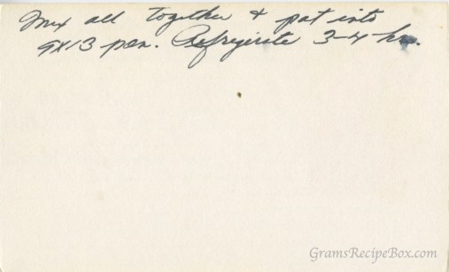 Mix all together & put into 9×13 pan. Refrigerate 3-4 hours.