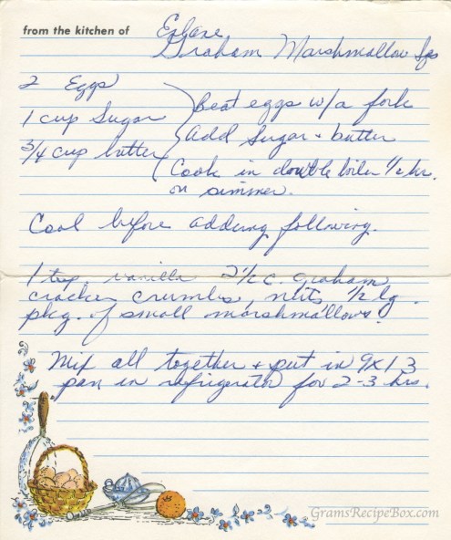 Here’s a no-bake cookie bar that sounds pretty good. You could even add chocolate chips and it would be like a s’more or rocky road bar. There are two versions of the recipe here, one with a teeny tiny bit more detail. Sounds delicious!