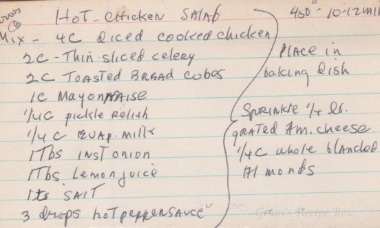 Hot Chicken Salad – Serves 6 450º 10-12 min