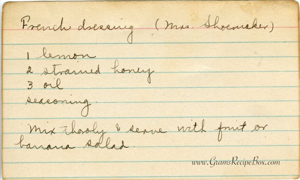 We’re going to take an exciting voyage for a while into the world of “someone else’s Gram’s” recipes, heh. My friend Pauline loaned me some recipe cards that were her grandmother’s, some of her mother’s and some of her own. She isn’t sure which came from where in most cases, so we will give these the pretentious name of “the Bingham Collection.” :-)
