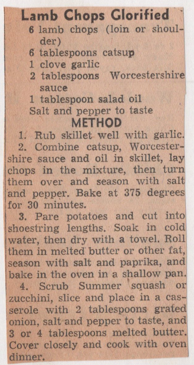 I suppose this is meant to seem fancy but it’s really actually quite easy. “Glorified” makes it sound self deprecating in a way. We don’t see lamb chops too often in the grocery where I live. Either they get bought up immediately, or there isn’t as much demand and they don’t stock very much. Growing up, my mother would serve us lamb chops when my dad was traveling because he didn’t really like lamb. I enjoyed it, but it definitely has a distinct taste that some might not enjoy. I appreciate that the recipe includes all the side dishes, because sometimes the entree is the easy part of dinner.