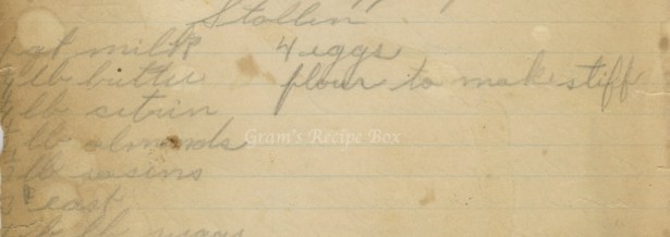 In this particular recipe there is the notation for “scant” amounts. This means just slightly less than the full measure. And since it isn’t quantified, you really can’t guess exactly how much the recipe really wants. For instance, the 1/2 cup butter scant could mean to cut the butter off the width of a knife, or just below the line, or as my grandmother did, use the measuring cup with a dent in it. Next, the recipe ingredients list sour milk, but the method mentions butter milk. Make sour milk by adding lemon juice or vinegar to regular milk. I think it was just an error that she wrote butter milk.